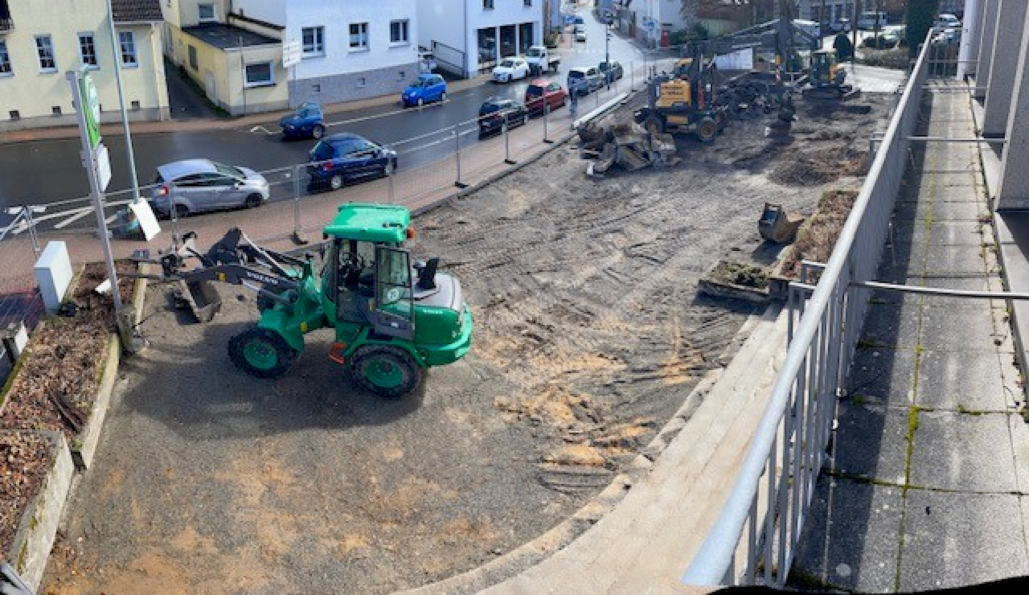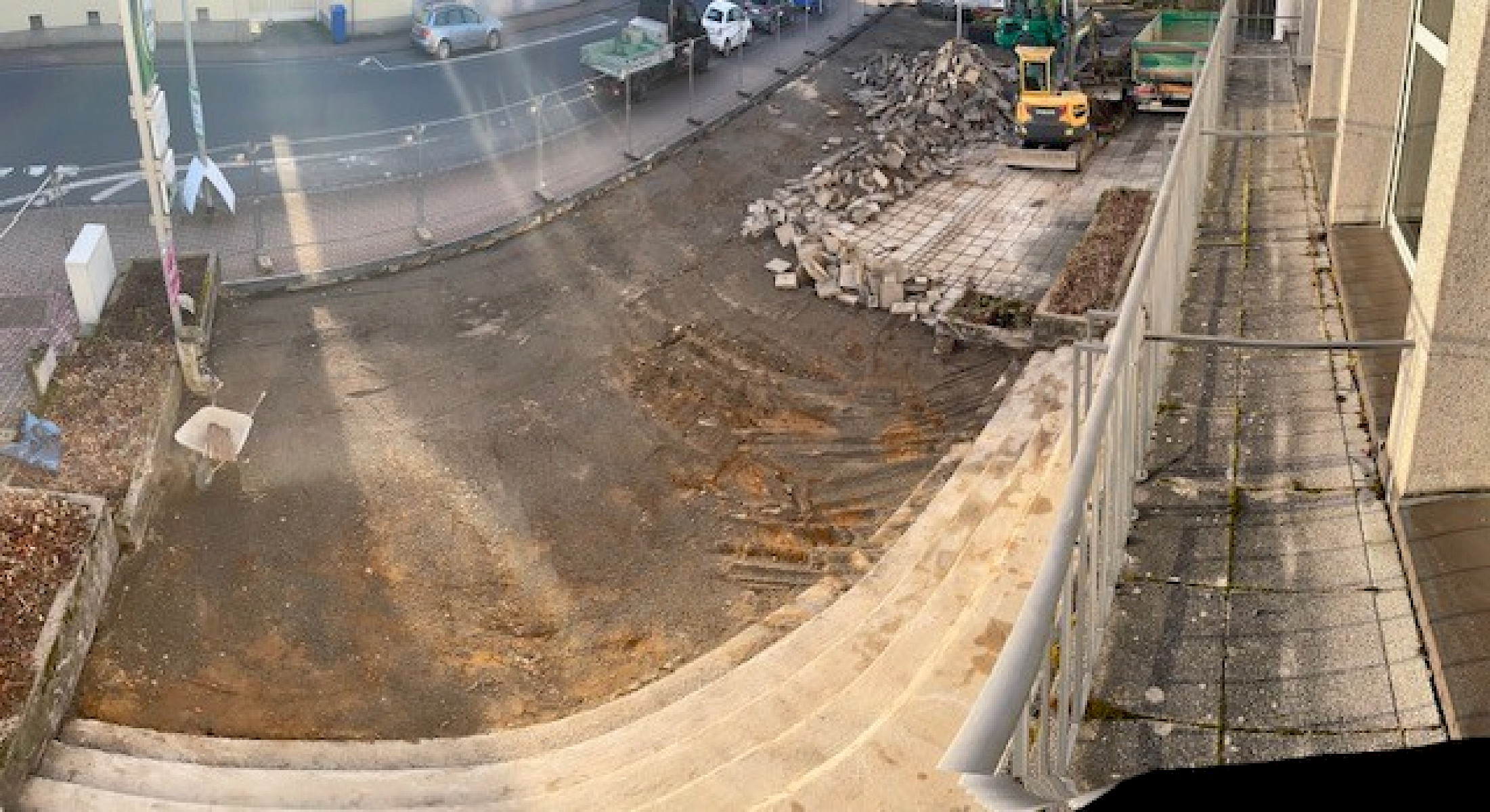 Die Sanierung des Vorplatzes an der Stadthalle schreitet weiter voran: Die Baggerarbeiten sind inzwischen gestartet und die alten Plattensteine wurden bereits entfernt. Der aktuelle Stand vor Ort macht die sichtbaren Fortschritte auf der Baustelle deutlich.